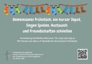 Seid herzlich willkommen mit Anmeldung bei Bettina Mazurek (Handy 01522 3079941), um das Frühstück besser planen zu können, für das wir gerne eine Spende nehmen.